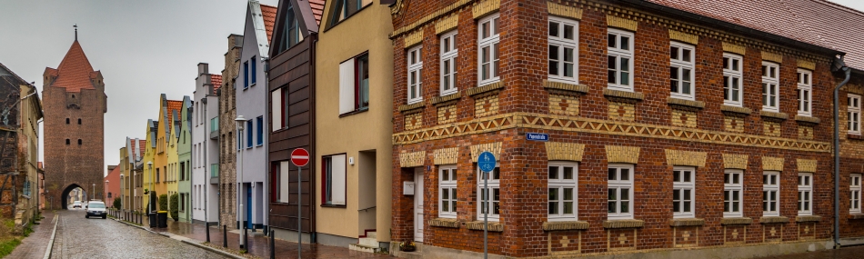 Von der am Hafen vorüberführenden Straße, in der der Bus gehalten hatte und die passenderweise den Namen Hafenstraße trägt, biege ich in die Fischerstraße ein. Bereits nach wenigen Metern passiere ich die einstige mittelalterliche Stadtmauer, was allerdings kaum zu bemerken ist, da sie nicht mehr steht. Lediglich die hier die Fischerstraße kreuzende Mauerstraße erinnert mit ihrem Namen an das historische Bauwerk, das die Stadt einst vollständig umgeben hat. Genau hier hat sich auch eines der vier Tore befunden, die damals Zugang zur Stadt gewährten. Im Pflaster der Straße hat man dessen Standort markiert, indem man links und rechts der mit Kopfsteinpflaster ausgelegten Fahrbahn die diese begrenzenden Mauern des Turms angedeutet hat. Warum man dafür auf der rechten Straßenseite allerdings erhöhte, in die Fahrbahn hineinragende und sie so verengende Bordsteinkanten verwendet hat, während sich die Markierung auf der linken Seite eben in das Straßenpflaster einfügt, erschließt sich mir nicht so ganz. Aber wie heißt es doch: Die Genossen werden sich schon was dabei gedacht haben. Ich muß unwillkürlich schmunzeln, als mir diese Redewendung aus vergangenen DDR-Tagen durch den Kopf geht.